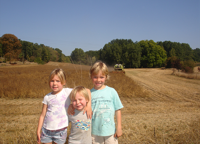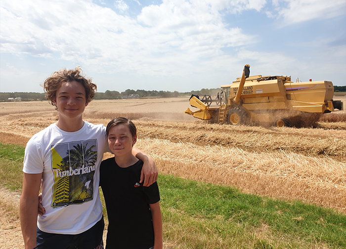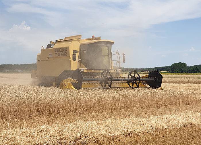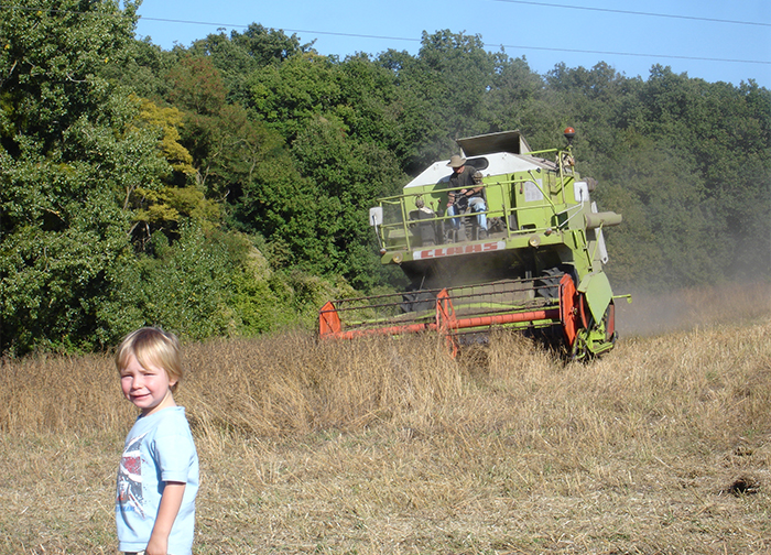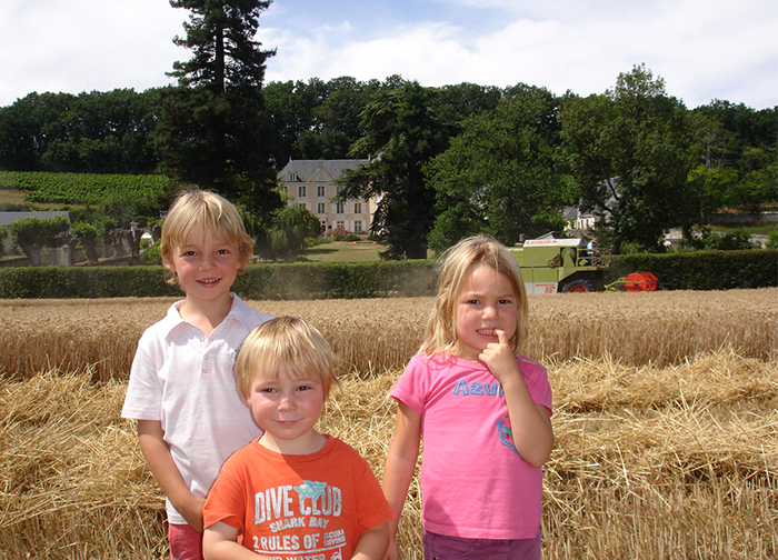 At Chateau Pas de Loup two principle varieties are grown, Ble Tendre which is the base for the all important French Bagette, while Ble Dur is a major ingredient in pasta and noodles, semolina and importantly livestock feed. Wheat growing in the Loire typically needs 260 days between sowing and harvest. The fields are ploughed and readied in August for planting in September. During September/October the young shoots grow to about 5 cm tall before stopping as the first winter frosts arrive. Then in the spring fertilizer, high in Nitrogen, is added which promotes the plant to reactivate and continue to grow through the spring. Harvest is generally around the middle of June.